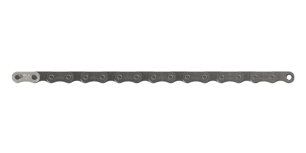 The Flattop profile isn't just an aesthetic flex, it's an engineering necessity. That unique shape of the SRAM Apex Flattop CN-APX-D1 12-speed chain enables a narrower 12-speed chain that is significantly stronger and quieter than its predecessors. Built with the same architecture as our Rival and Force lines, the Apex chain delivers pro-level durability in a workhorse polished grey finish.